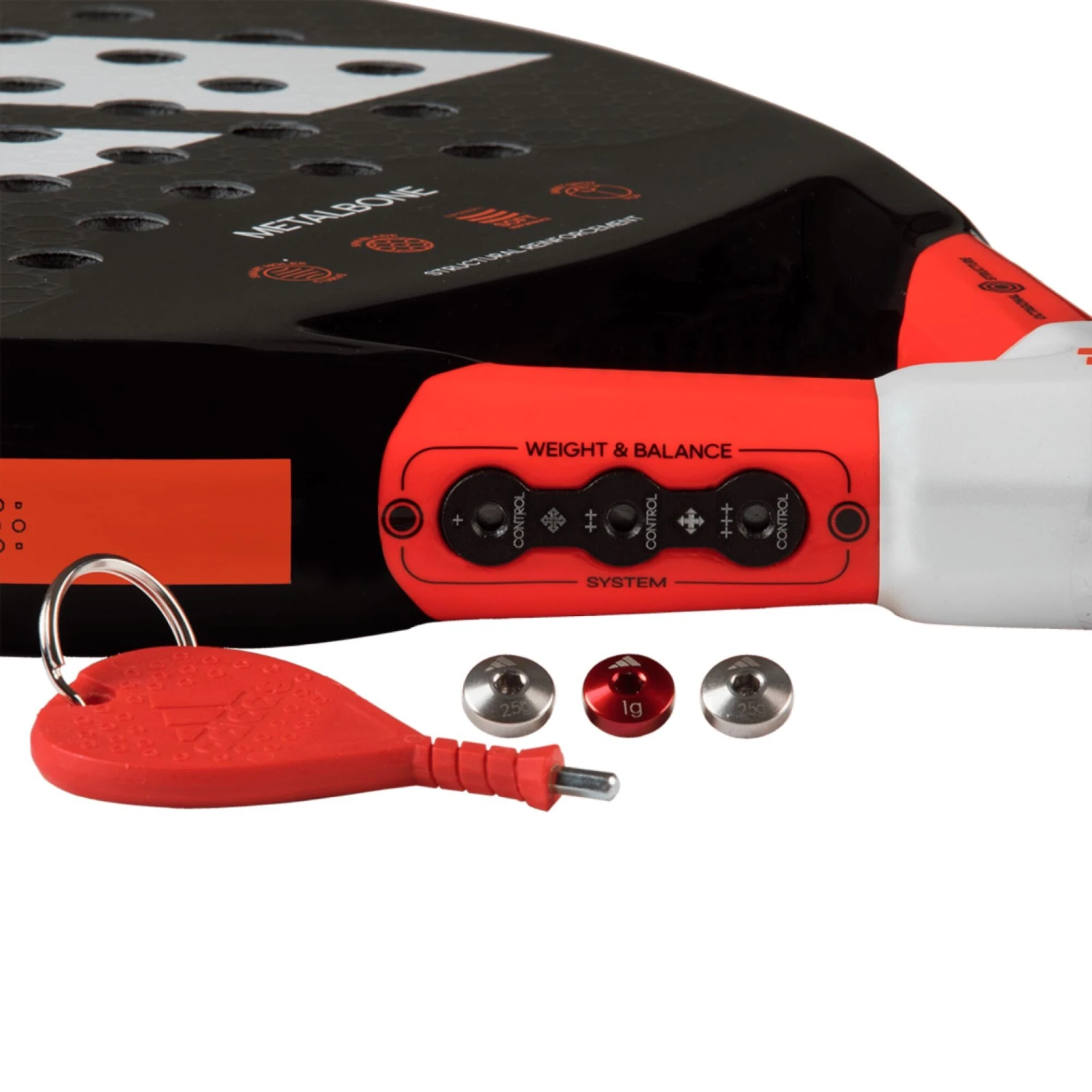 This technology involves a system of six removable screws on the racket bridge. You can add or remove screws to raise or lower the weight.