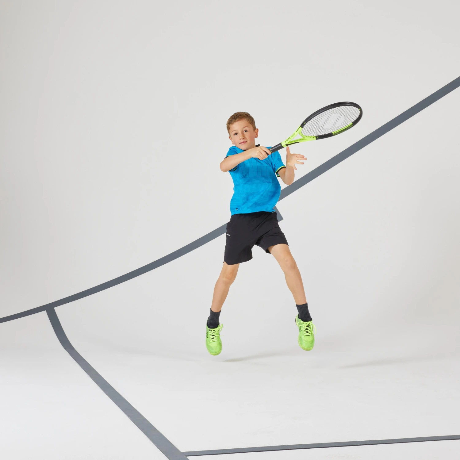 We designed this kids’ seamless tennis T-shirt for training and matches all year round. This kids’ T-shirt is extremely comfortable. It only weighs 70g in size 10 years. Its seamless fabric and design effectively wick away perspiration.